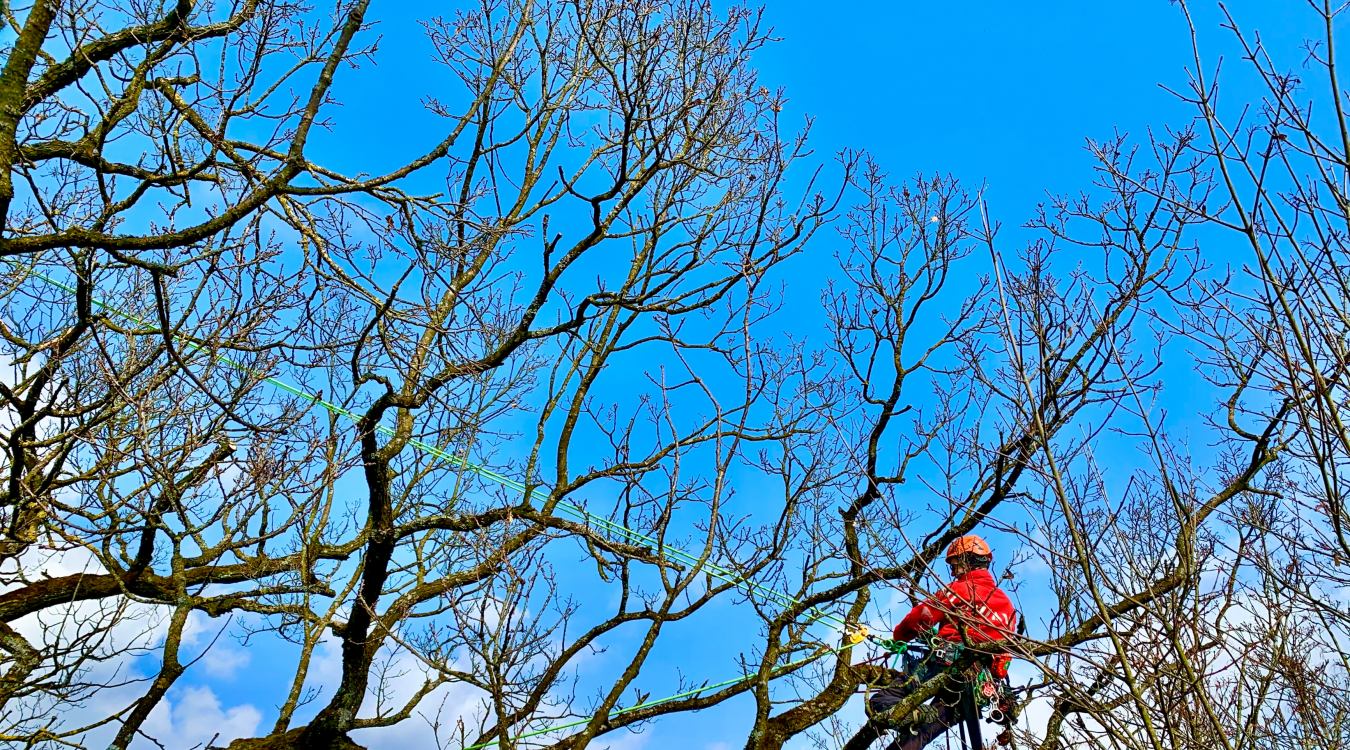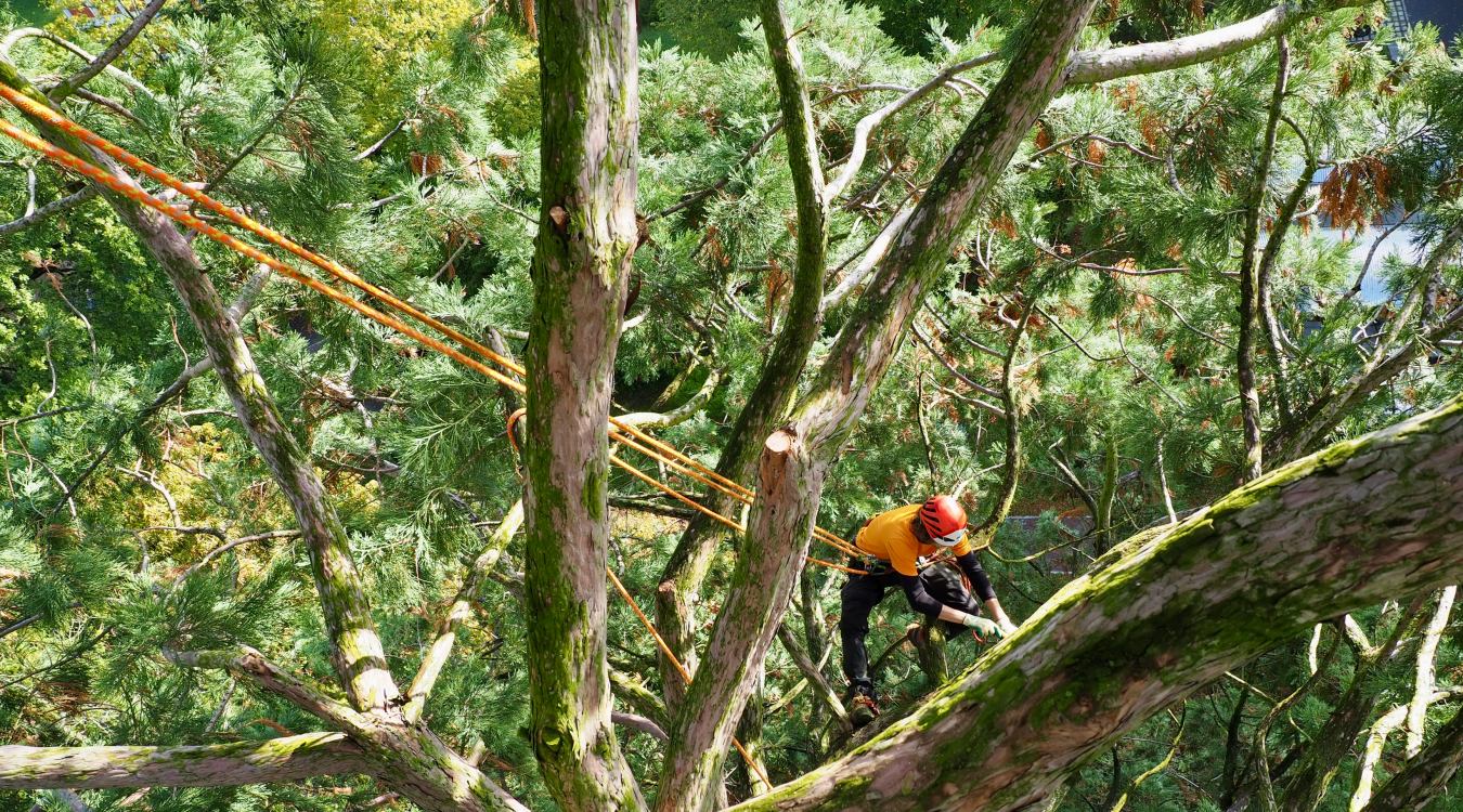 Mit der Seilklettertechnik arbeiten wir effizient und schonend – mitten in der Krone. Wir entlasten, begrenzen, formen, lichten aus, entfernen Totholz, korrigieren Fehlentwicklungen, erstellen Lichtraumprofile und sichern gefährdete Bereiche bei Bedarf mit geeigneten Systemen. Auch der Boden zählt: Wir verbessern belastete Wurzelräume und fördern das Baumumfeld.